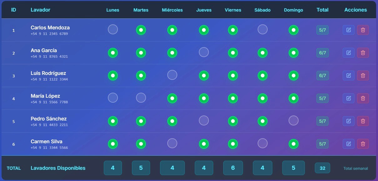 Gestiona a los lavadores todos desde un mismo lugar. El sistema se encarga de darle los turnos automáticamente.