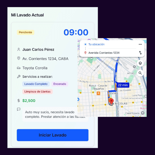Dedica tu tiempo a ganar más clientes, nosotros nos encargamos de automatizar completamente la gestión de turnos y rutas logísticas de tu lavadero de autos a domicilio.